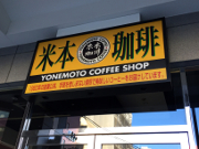 コーヒーショップ2軒めは神田錦町の「米本珈琲」。神田警察署(仮庁舎へ移転中につき、現在は工事現場)と向き合ってお店があります。目印は黄色い大きな看板。